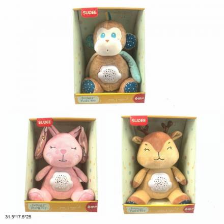 Нічник D1031/1032/1037 мавпочка/зайченя/оленятко м'як.батар.муз.проектор.3в.кор.31,5*17,5*25 /36/