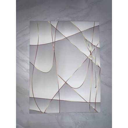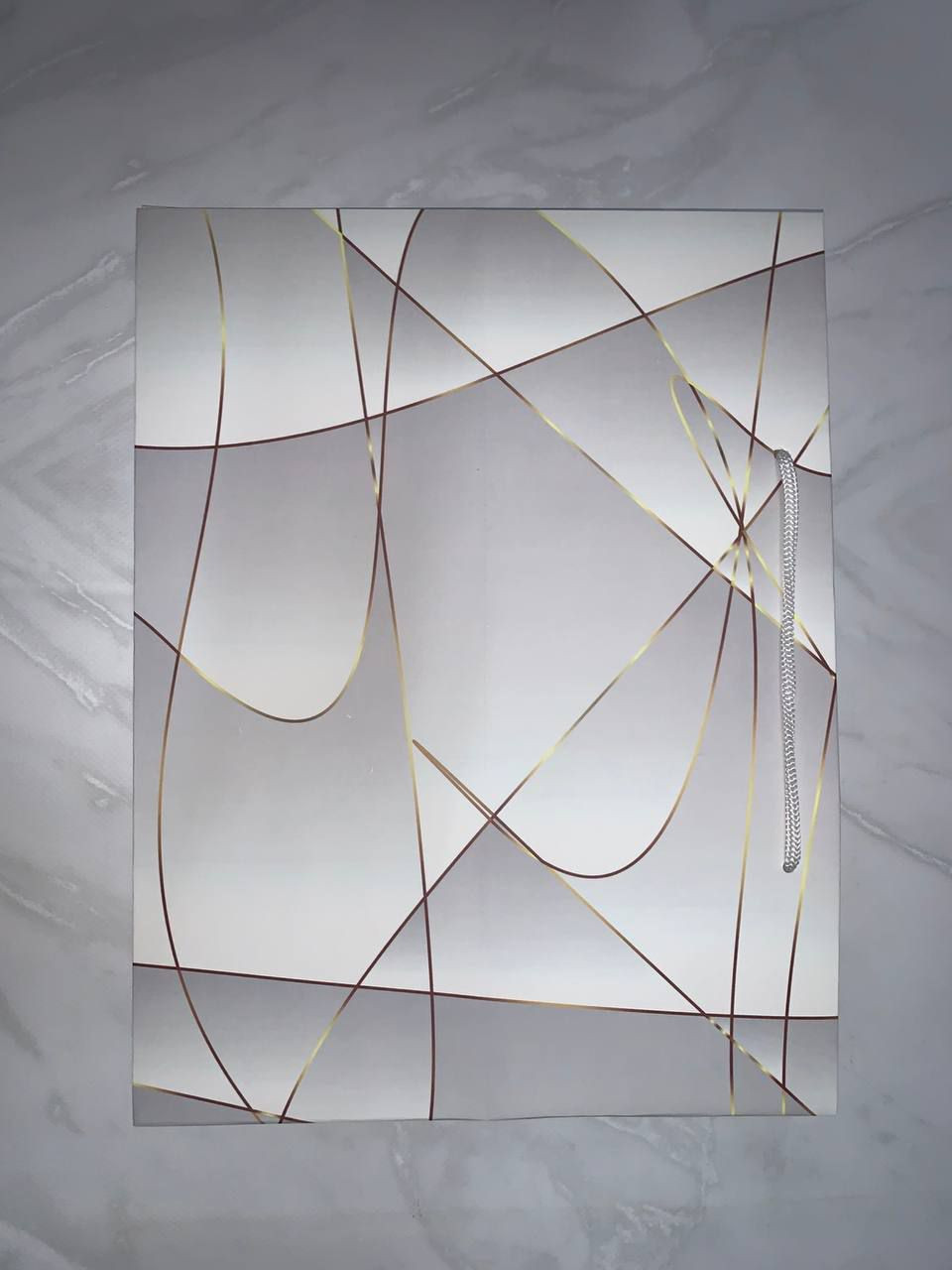 Пакет подарунковий широке дно 29*38*29см сірий в золоті полоси