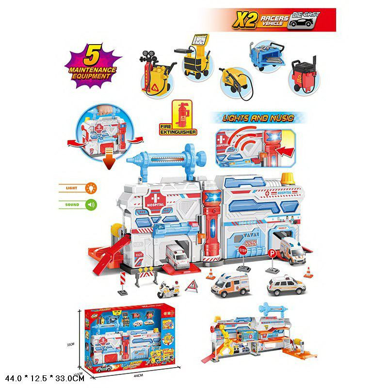 Паркінг арт. SK-599HB (12шт/2)  батар. пластик + метал, світло,звук,  короб. 44*12,5*33см