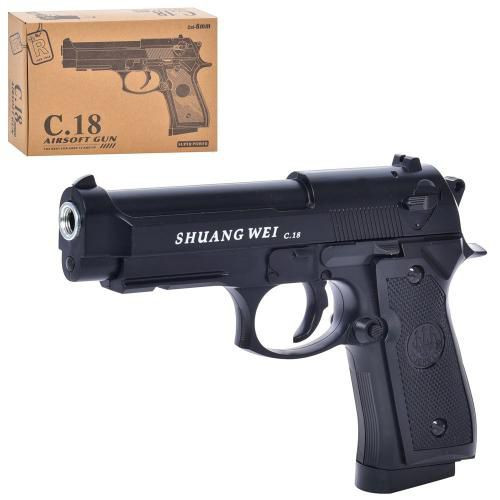 Пістолет C18 (18шт) метал, на кульках, 19см, в кор-ці, 23-16,5-4,5см