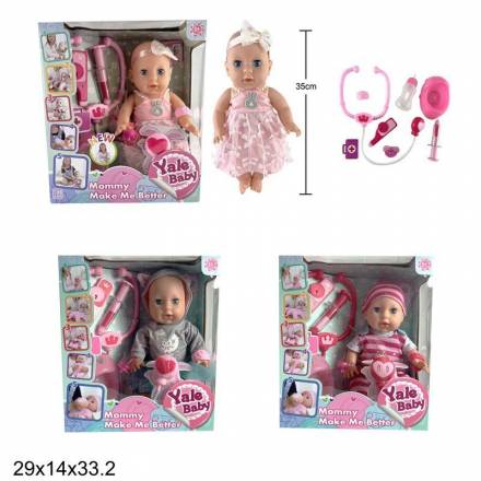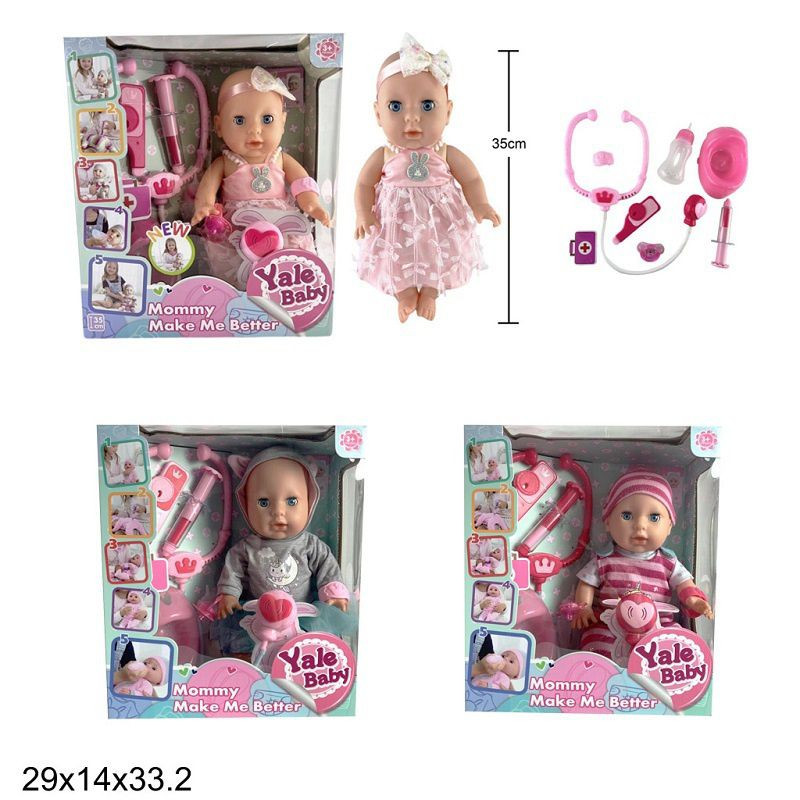 Пупс 35см YL1955K/L/M інтер-ний з набором лікаря,кліпає,горщик,муз.3в.кор.33,5*14,5*29 /12/