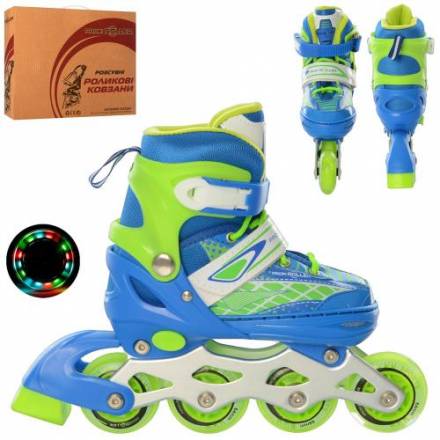 Ролики A 4140-S-BL(31-34) (1шт) розсув., шнурівка+бакля, ал.рама, кол.ПУ70мм., 1 світло, синій, кор.