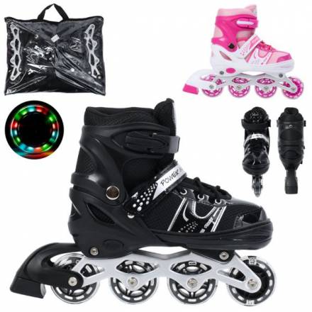 Ролики A4164-M (35-38) (6шт) розсувні, шнурівка+бакля, алюм.рама, колеса ПВХ 65мм 1світло, устілка 2