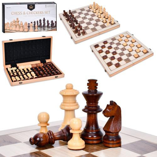 Шахи FG240502021L (12шт) дерев'яні, 2в1(шашки), фігури дерев'яні, в кор-ці, 40-20-5см