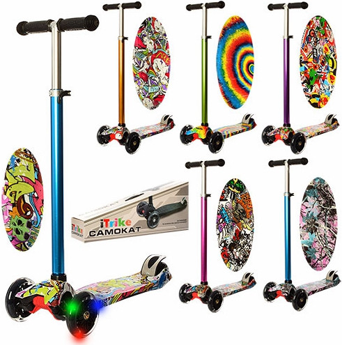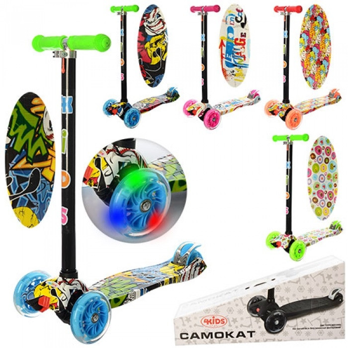 Самокат JR 3-055-L (8шт) MAXI,кол3штПВХсвет,2пер120мм,задн.75мм,принт,8вид/8цветов