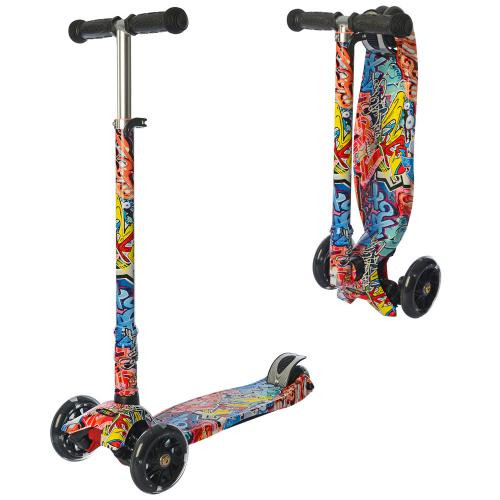 Самокат JR 3-055-WP8 (1шт) MAXI,алюм+плас,3колПУ,пер120-28мм,руль62-84см,складн,свет, принт,в кор-ке