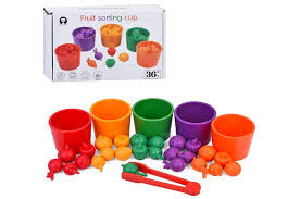 Сортувальна гра монтесорі WD2157V фрукти/овочі, стакани, пінцет, в кор-ці