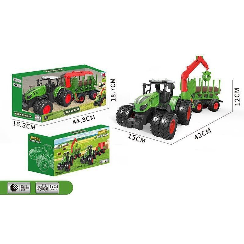 Трактор 99-83 A масштаб: 1:24, причеп, маніпулятор, вантаж, гумові колеса