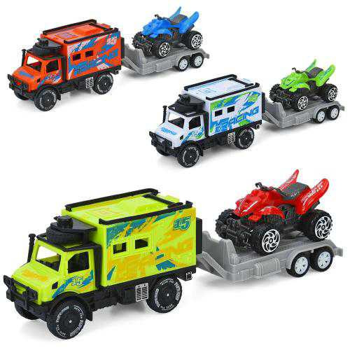 Трейлер 1895-21 інерц, з причепом, 23см, квадроцикл 7см, 3 кольори, у пакеті, 13-29-7см
