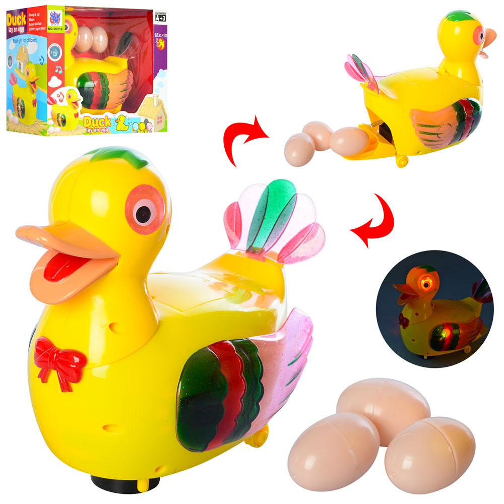 Качка 20218 (48шт) 19-17-13см, їздить, несе яйця, муз, світло, яйця 3шт, на бат-ці, в кор-ці, 23-18