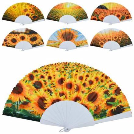 Віяло YG0239 (420шт) 23см, соняшники, мікс видів, упаковка пакет 12шт